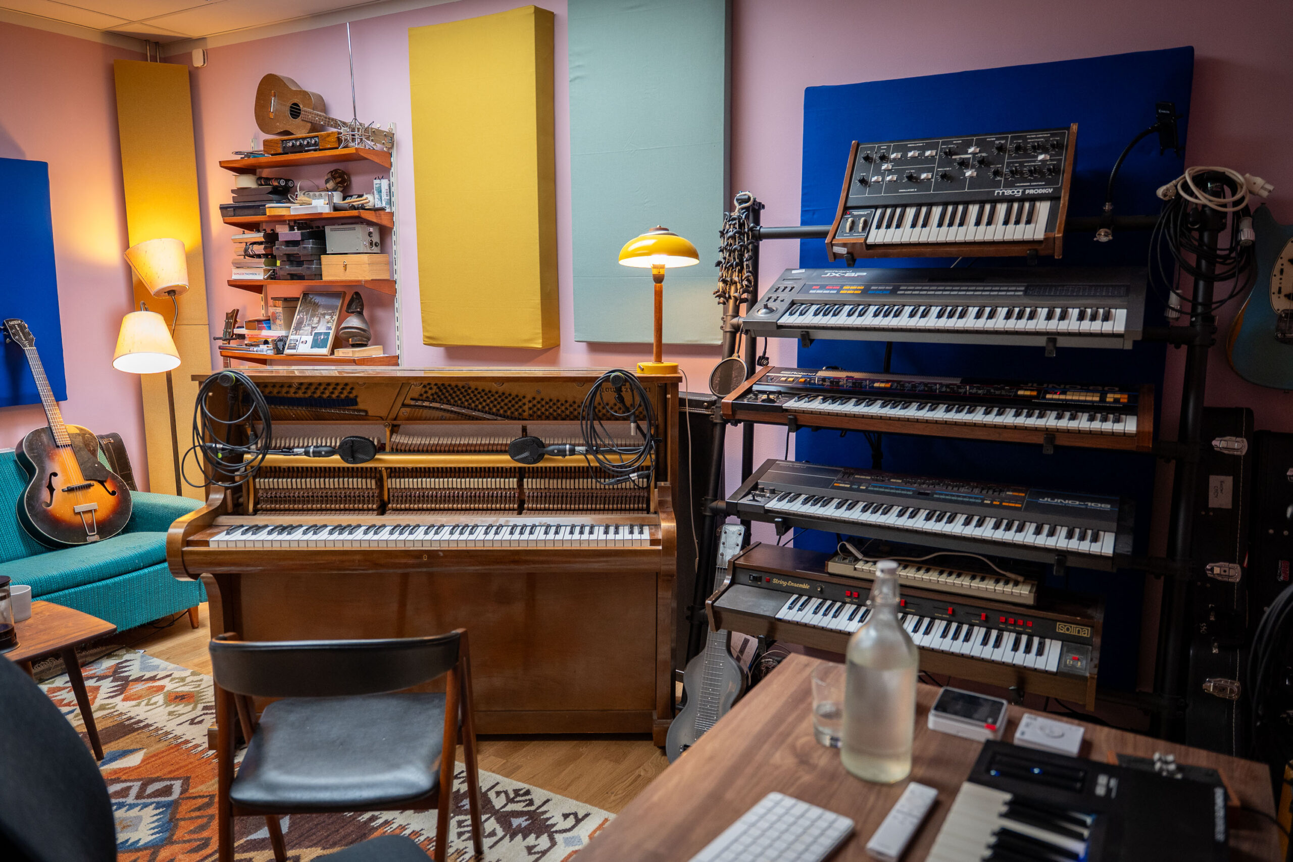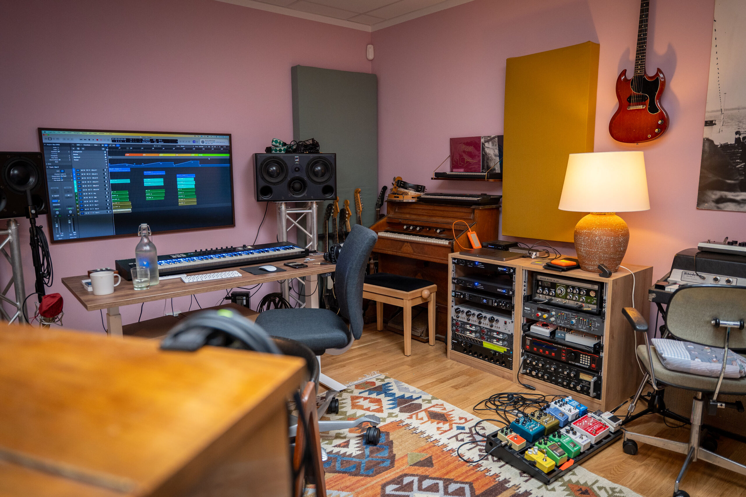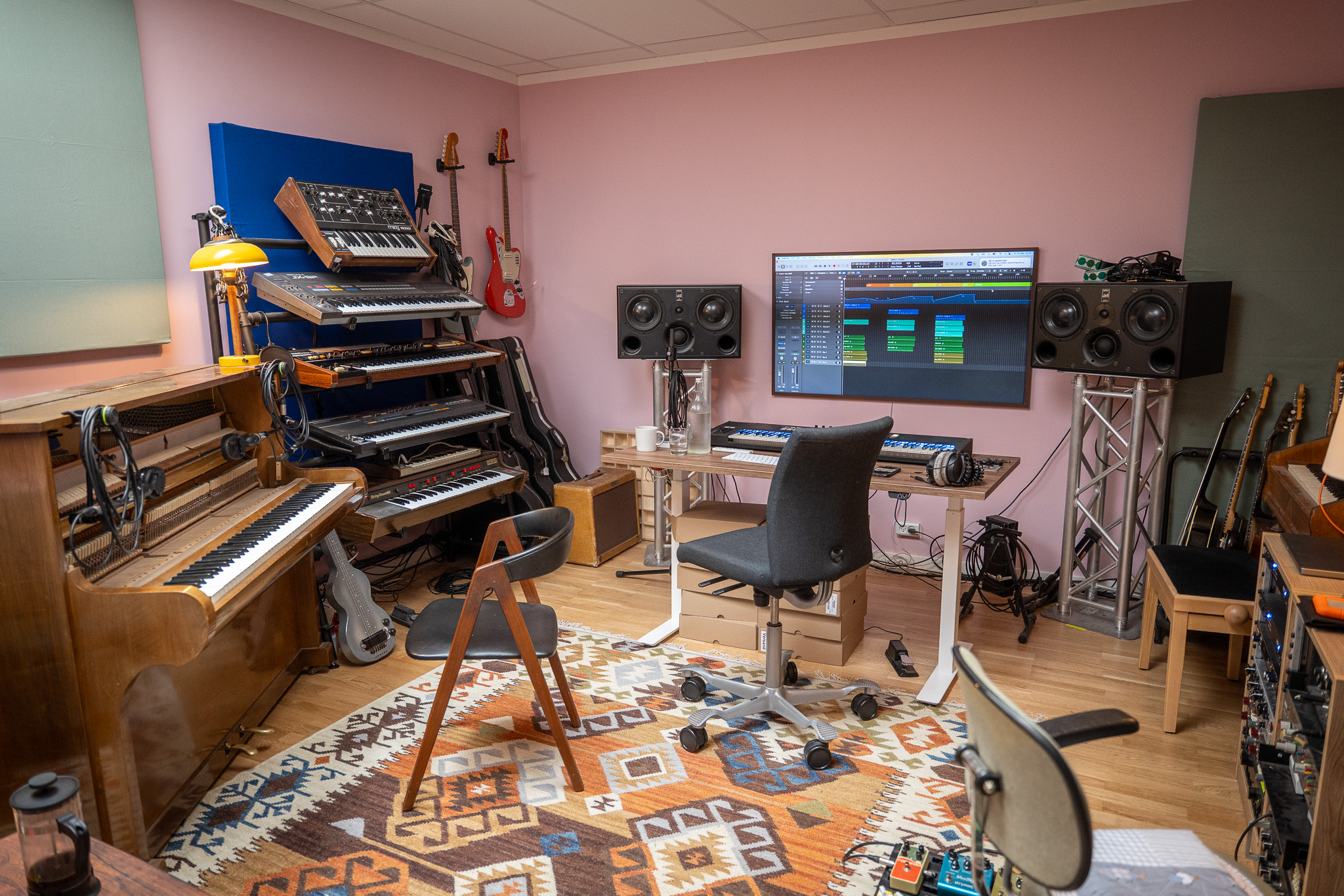Three year ago I moved from a small apartment with both a basement and a livingroom filled with instruments – to a big house in the remote suburbs of Copenhagen. A semi-old house that used to be both a home and a plumbers workshop. I love DIY for various reasons, so I have been spending lots of time renovating the place and bring out all its character. The last part was the old workshop that I started working on in the beginning of the year – that was to house a dining room, a second livingroom and my music studio. As I was without a studio for like two years, I used my home office (which houses my Kawai piano) as a mini studio. With a growing collection of gear as I kept buying stuff (while most of the old stuff was still packed down).