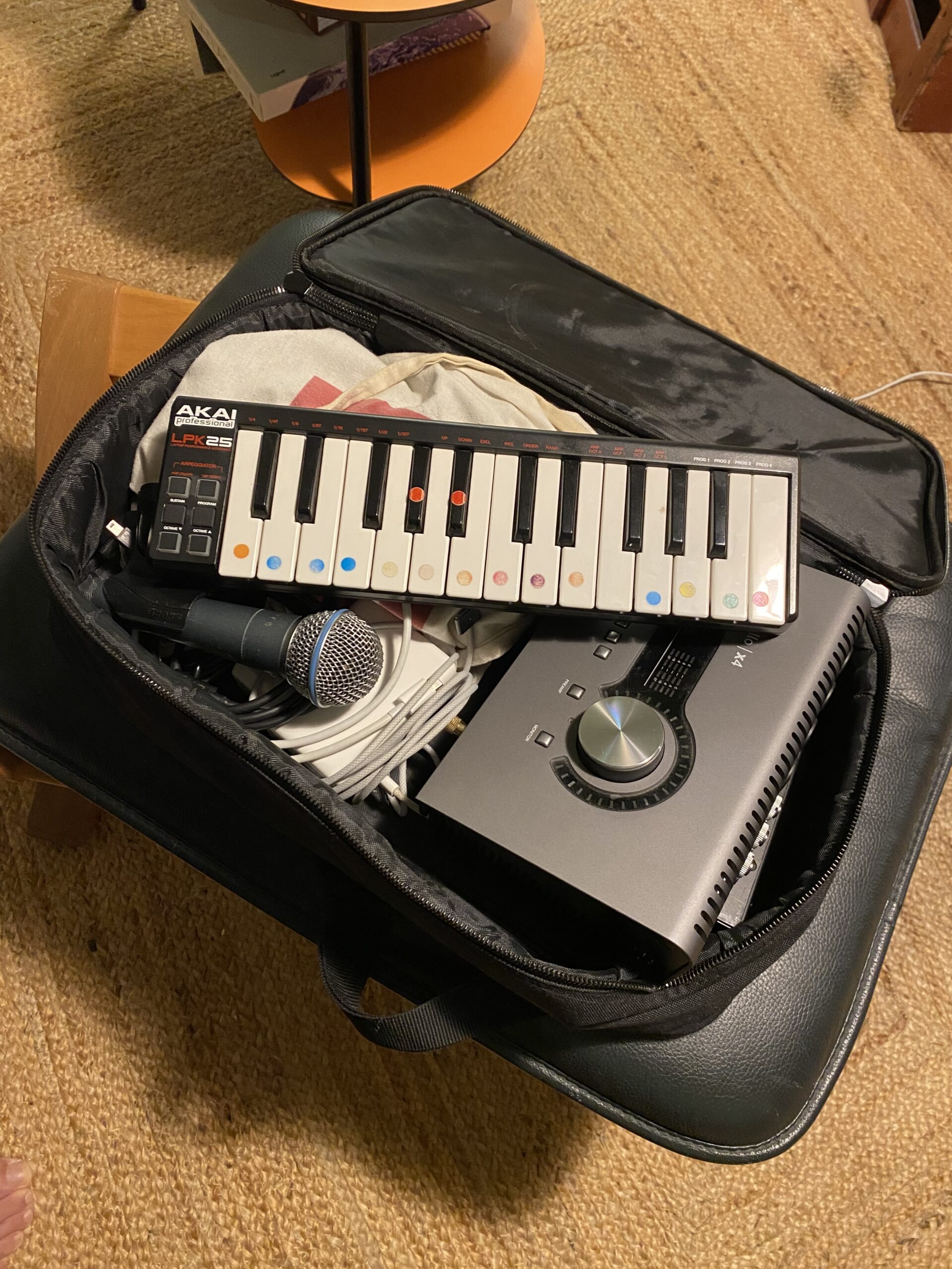 Keybird X1 – a portable budget unacorda piano. It was designed in another suburb of Copenhagen, and I like supporting the locals. It is a different instrument to the Kawai I have in the home office – and it works very well with different effect units.